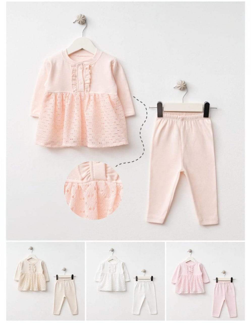 Ensemble 100% Cotton pour bébé Wrap your little one in soft, breathable comfort with this 100% cotton set .Give your baby the best, most gentle start with this high-quality, natural fabric.